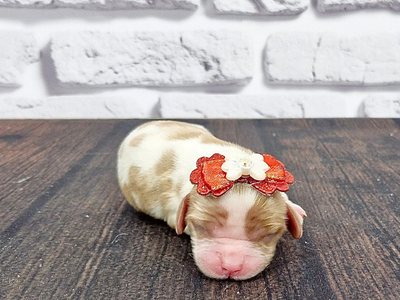 Cabeça moderadamente grande em proporção ao corpo, com olhos escuros e grandes que transmitem uma expressão suave e amorosa. As orelhas são longas e caídas, cobertas por pelos ondulados que acentuam sua aparência graciosa.